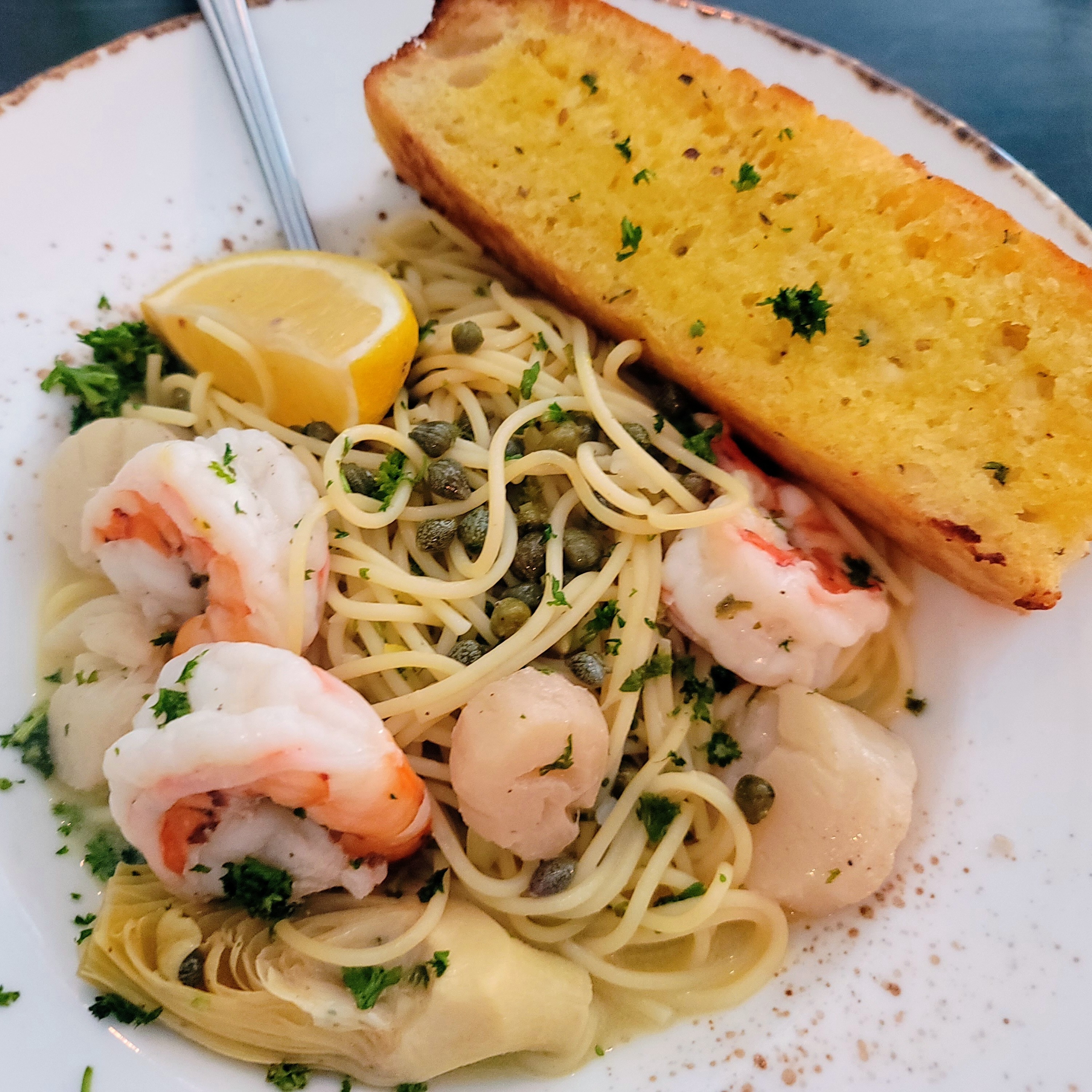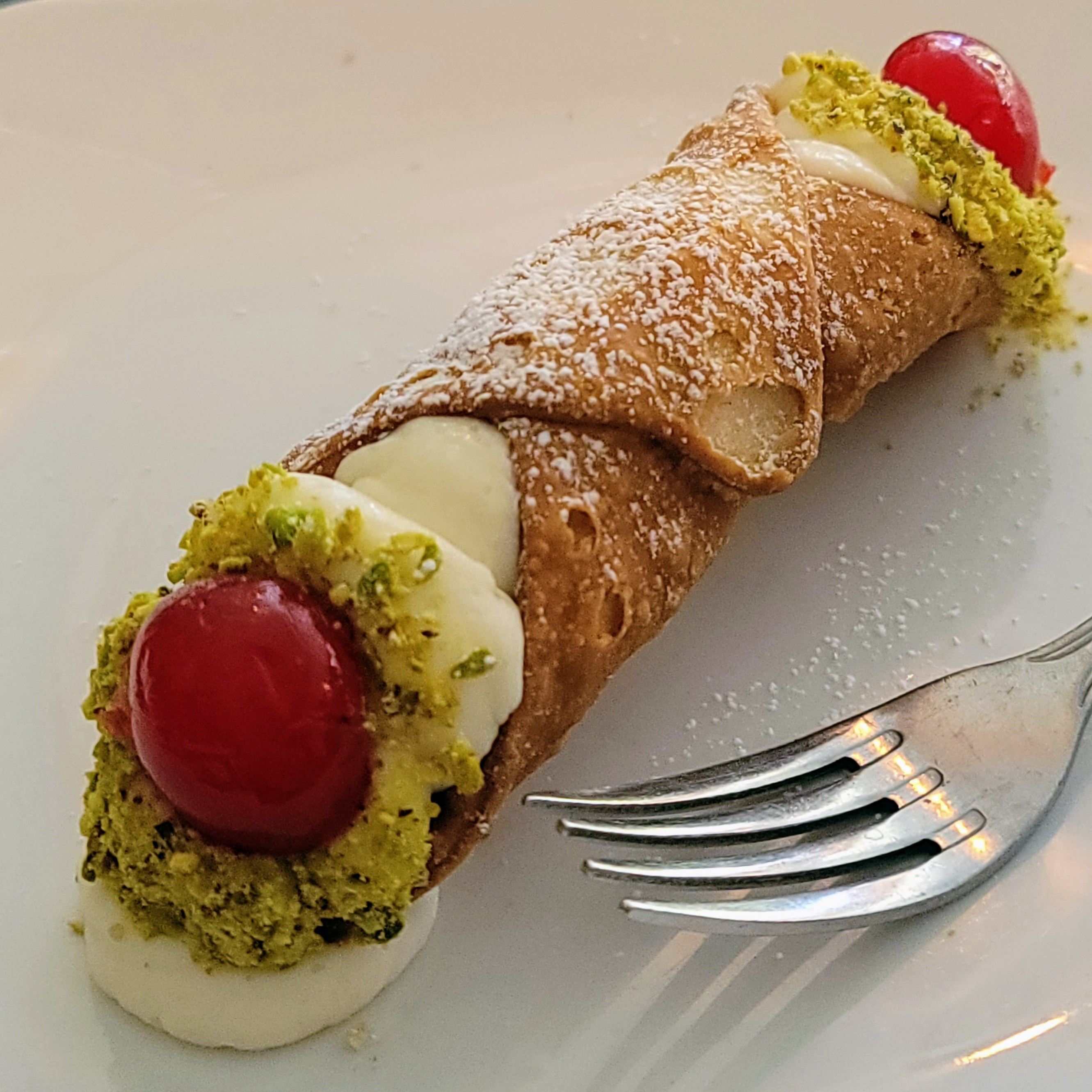 Little Roma! That's Ondine's shrimp and scallops scampi, John's fennel sausage risotto, the tiramisu and cannoli