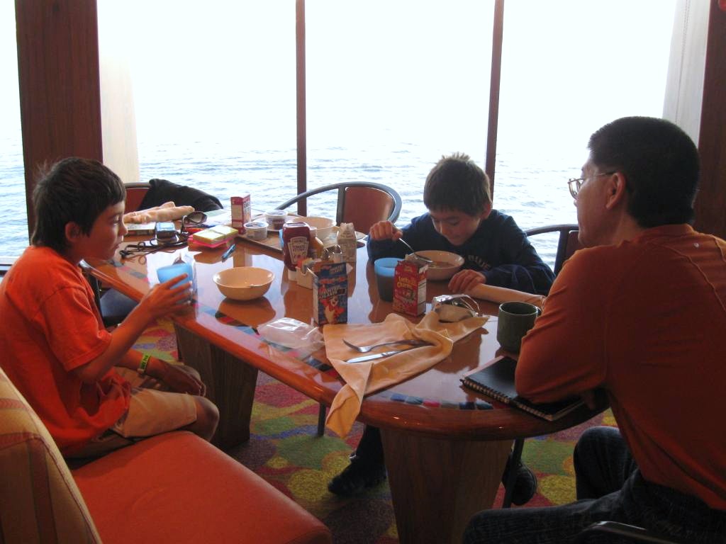 and Ondine took the boys to the buffet. John enjoyed watching the ship pull into