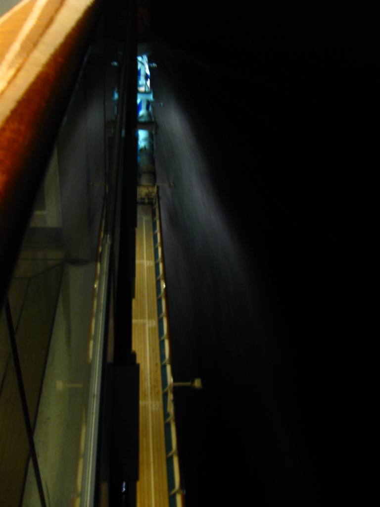 John, Roy, and Leo found that they stood almost in the middle of the ship, so as the “azipods” spun the ship 180 degrees in place, the entire panorama of land and sea and ship seemed to rotate around them.