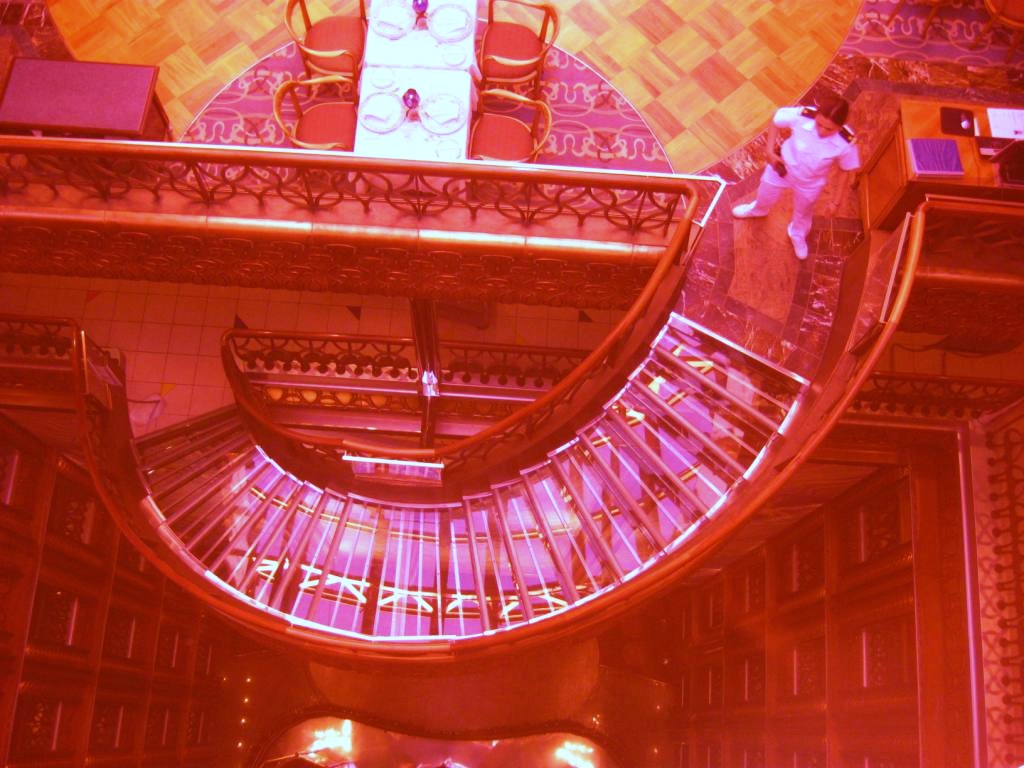 “Everything revolves around us!” John exclaimed. “Pull! Push!” And Leo pulled on the railing on one side, John pushed on the other, and Roy pulled with his right arm and pushed with his left. People in decks above peered down at their activity with puzzled curiosity. But slowly, laughing, the Kuraoka boys spun the Carnival Spirit on its axis, with no help from the other guests, the lazy sods.