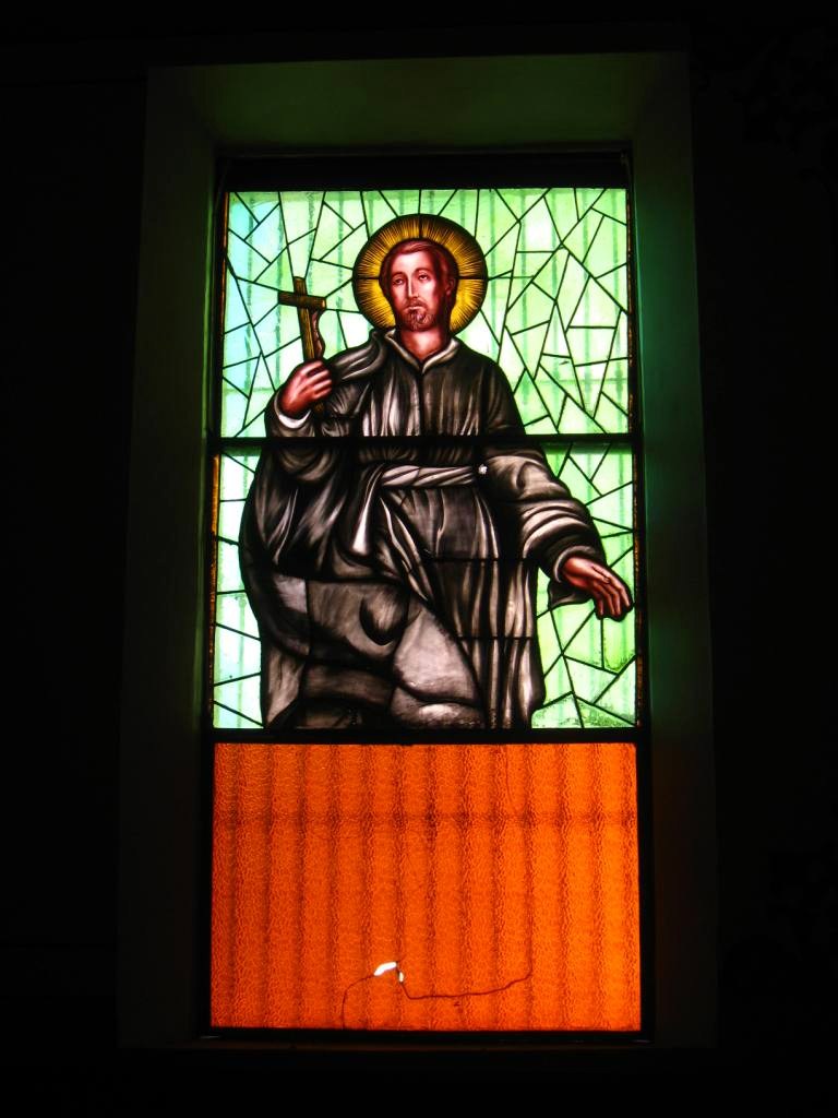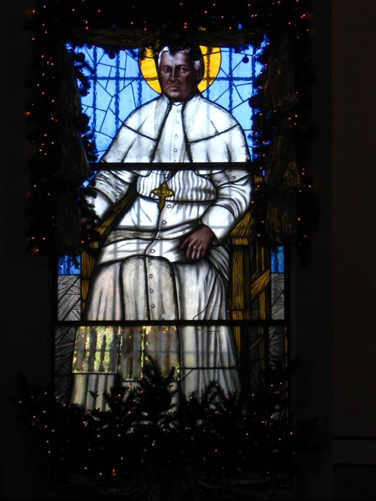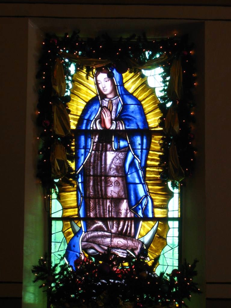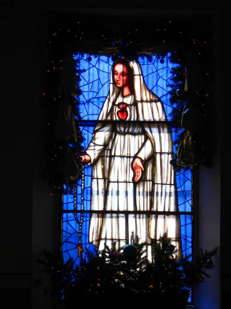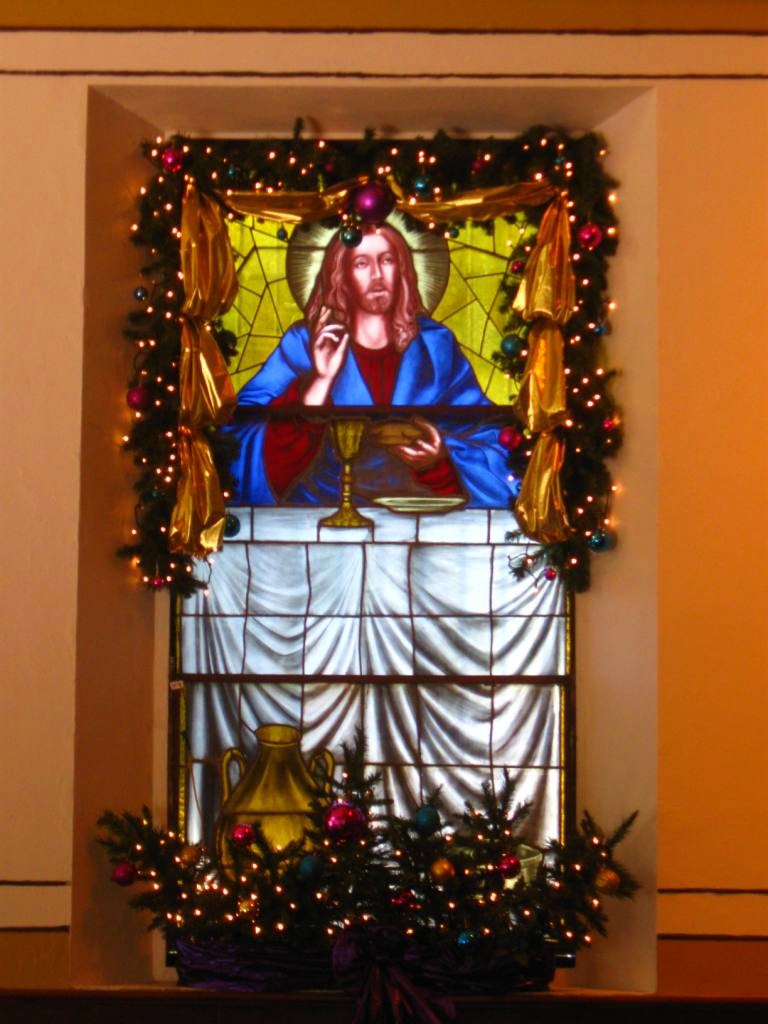 community church. The altars and stained glass windows were draped with boughs