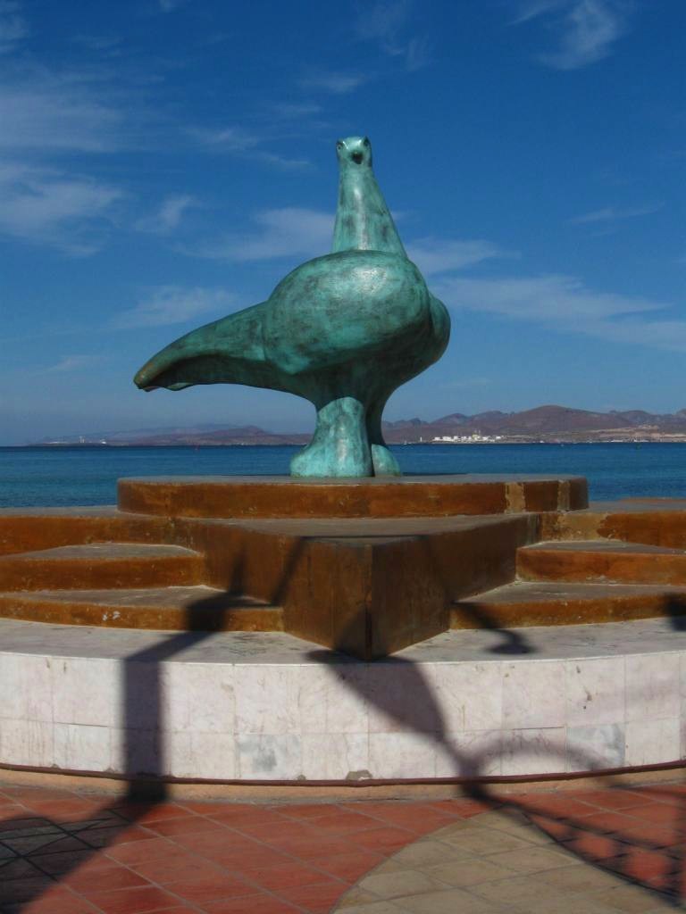 huge sculpture of a dove, La Paloma by Juan Soriano. Ondine and Leo